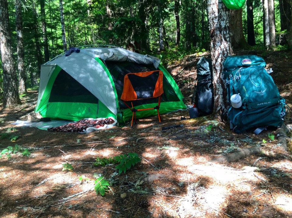 The Sierra Designs Flash 3 tent is perfect for couples who need a little more space especially if you have dogs like we do. The Flash 3 has a unibody design where the rain-fly is attached to the body of the tent which is excellent for setting up in the rain without getting the inside of your tent wet. This 3-man tent also offers rollup vestibules for stargazing or extra ventilation, It has 2 large doors with windows that can be zipped down, 4 pockets one in every corner for stashing small items like a head lamp or reading glasses, as well as a sierra designs unique Night Glow accessory. Night Glow is a cone shaped contraption that hangs from the roof of the tent which allows you to insert your headlamp of choice to create a diffused light source to light up your entire tent with ease. Beyond the cool features of this tent is is just functional, It has two vestibules that you stake out or roll up for full ventilation and visibility (2) on each side one can easily fit two large packs, so there is more than enough storage. My favorite feature this tent has is definitely the half moon zipper door you can access from the vestibule area which came in very handy for passing things through the tent for initial setup or grabbing things out of your bag in the middle of the night.