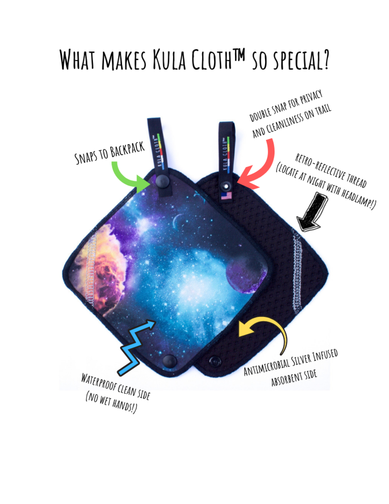 To knock out a few more concerns that even I had before I tried it for myself. The Kula doesn’t show stains or retain scents but when it is time to clean — it is super easy to care for. Just throw it in the wash or by hand, use biodegradable soap if washing outdoors then hang to dry. It dries super fast so you can even wash it while your out on an extended backpacking trip. Even for the descreet the Kula snaps closed to only show a variety of cute waterproof patterns, surely to only add to your trail style as well as keep your hands dry. This piece of gear will for sure be a game changer for you as it has been for me and so many other women who are already part of the Kula revolution.